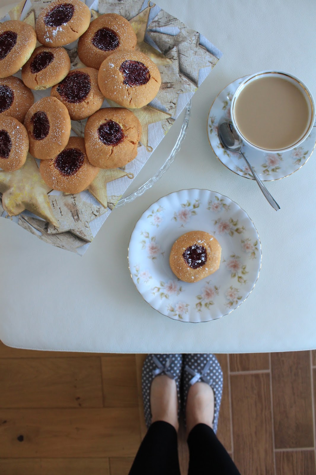Jest on niezwykle uniwersalny bo ciasteczka mo?emy poda? z oboj?tnie jakim d?emem. Ja u?y?am domowego musu malinowego, ktry akurat mia?am pod r?k?. To ju? Wasza inicjatywa co wybierzecie!