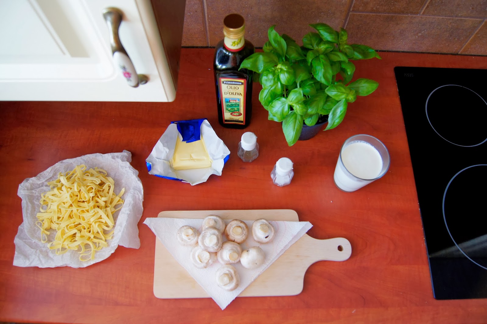 Miodowo-musztardowe udka z kurczaka i tagiatelle w sosie ?mietanowym z pieczarkami
