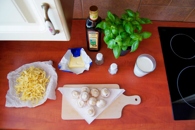 Pieczarki kroimy na plasterki. Na patelnie wlewamy odrobin? oliwy z oliwek i dodajemy kawa?ek mas?a. Nast?pnie wrzucamy na patelni? pieczarki i na wolnym ogniu sma?ymy. Gdy p?yn na patelni wyparuje wlewamy ?mietan? i gotujemy, a? do zg?stnienia sosu (ok. 20 minut) na bardzo wolnym ogniu. Dodajemy sl i pieprz do smaku.