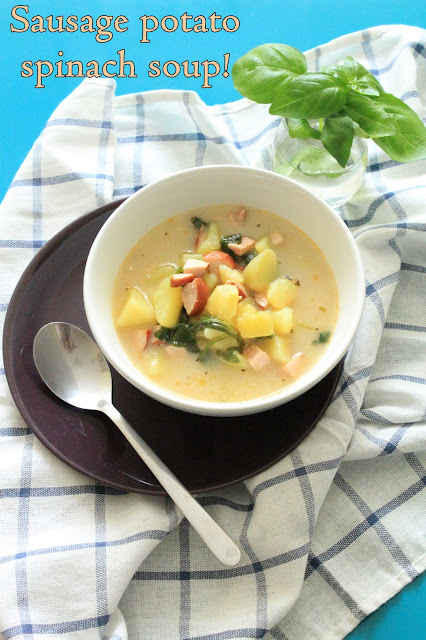 Kie?bas? i ziemniaki kroimy w kostk?. Na oleju sma?ymy kie?bas? z dodatkiem chilli przez oko?o 5 minut. Nast?pne dodajemy ziemniaki i sma?ymy kolejne 2 minuty. Wlewamy wod? na wysoko?? oko?o 5 cm od wszystkich sk?adnikw i doprowadzamy do wrzenia. Gdy zupa zacznie si? gotowa? dodajemy piramidk? smaku i wszystkie pozosta?e przyprawy. Zup? gotujemy, a? do momentu, gdy ziemniaki b?d? mi?kkie. Szpinak dok?adnie myjemy pod bie??c? wod?, lekko siekamy i dodajemy do zupy. Teraz czas doda? ?mietan?. Jednak istnieje mo?liwo??, ?e si? zwa?y, wi?c aby temu zapobiec wlewamy 4 ?y?ki ?mietany do kubka i dodajemy ?y?k? zupy i energicznie mieszamy, dodajemy jeszcze dwie ?y?ki do ?mietany i mo?na wla? j? do zupy. Nale?y pami?ta?, ?eby ca?y czas miesza? zup?. Gotujemy jeszcze 4 minuty i mo?na nak?ada?! 🙂