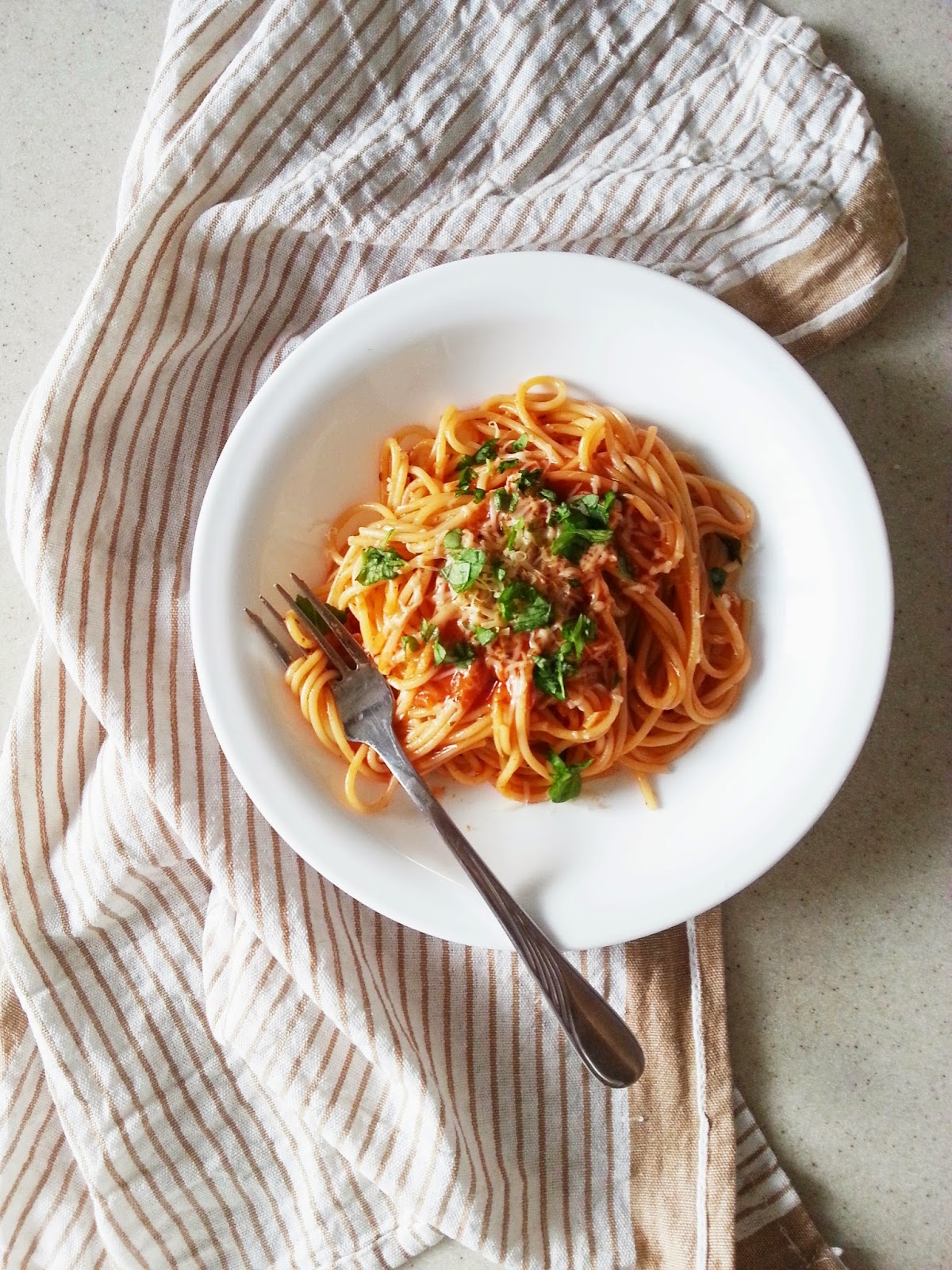 bardzo lubi? bezmi?sne spaghetti, poniewa? jest to kwintesencja smaku pomidorw 🙂