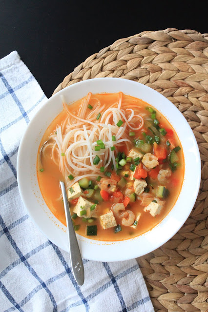 Uwielbiam takie syc?ce zupy z du?? ilo?ci? warzyw, a w po??czeniu z tofu, krewetkami i makaronem, mamy pe?nowarto?ciowy posi?ek. Pami?tajcie o dodaniu mleczka kokosowego – c? to ono robi tutaj ca?? robot? 🙂 Smacznego!