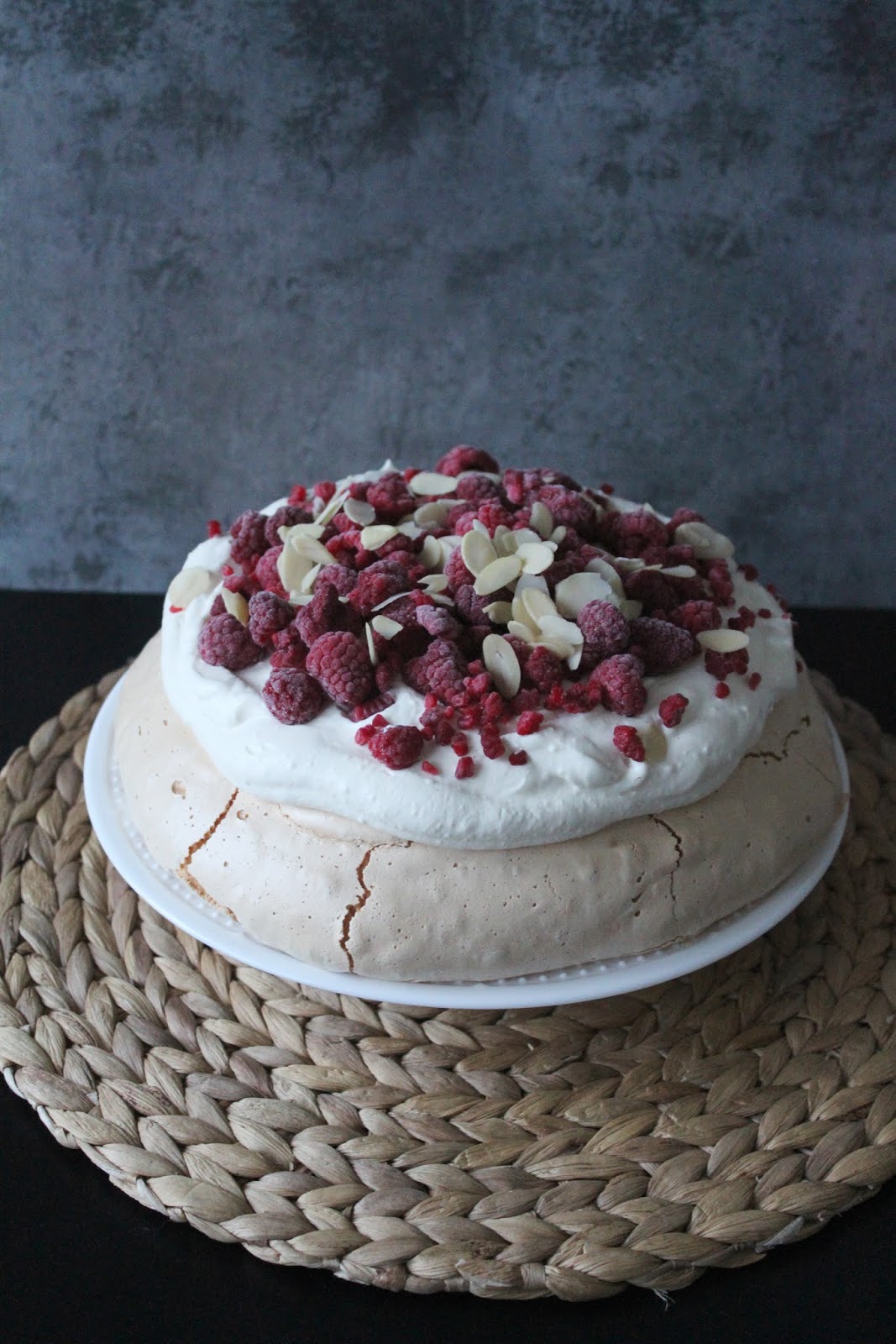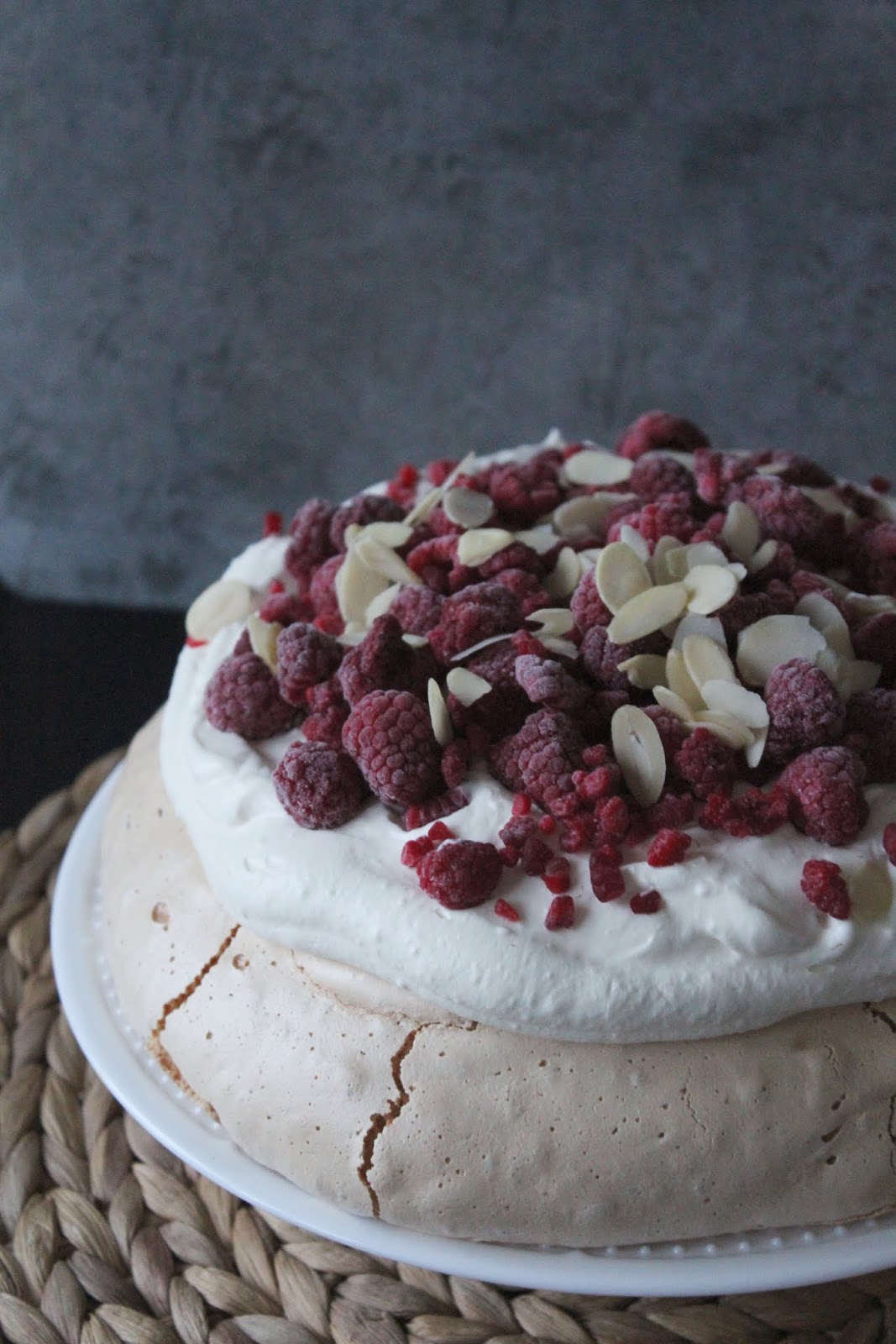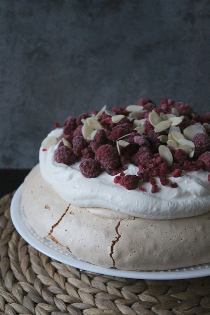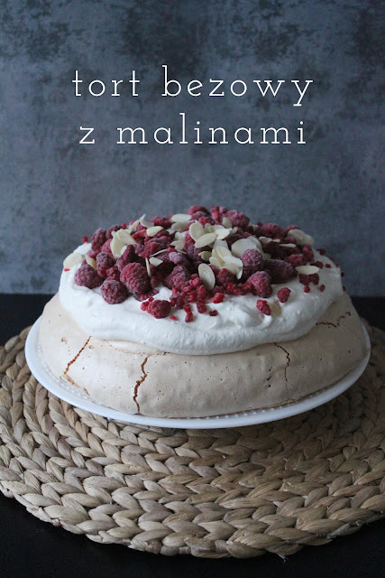 Ostatnio jednak mia?am ch?? na co? z kremem i tak w jednej kawiarni spojrza?am na przepi?knie wygl?daj?c? bez? z wi?niami, ktra wr?cz wo?a?a do mnie 'Zjedz mnie!’ C? mog?am zrobi?, kupi?am i z ka?dym k?sem zakochiwa?am si? oraz mocniej. Moje przekonanie, ?e te kupione bezy s? niesamowicie s?odkie si? nie zmieni?o, ale swoj? domow? wersj?, troch? z cukru odchudzi?am, a do tego kwa?ne mro?one maliny idealnie rwnowa?? s?odki smak ciasta.