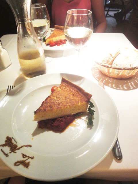Na przystawk? (ca?kiem spor? jak wida? na zdj?ciu) wybra?y?my quiche z ?ososiem i sals? z pomidorw.