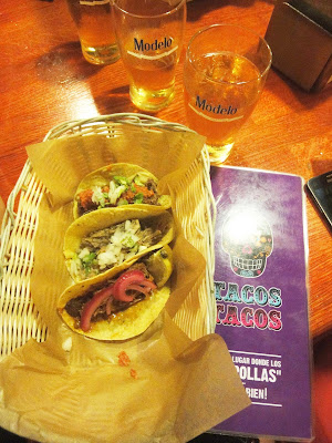 6. TACOS TACOS:Troch? Meksyku w Barcelonie te? nie zaszkodzi. Odwiedzi?y?my Tacos Tacos, aby sprbowa? ciekawych po??cze? smakowych kuchni meksyka?skiej. Do pysznych tacos by?y podane oczywi?cie sosy (bez niej kuchnia meksyka?ska nie ma racji bytu!). To dzi?ki sosom mo?na by?o podrasowa? swoje taco pod wzgl?dem pikantno?ci. Skala mocy sosw: od jednej do trzech papryczek na bazie papryczek jalapeno czy habanero. Ja oczywi?cie wybra?am ten naj?agodniejszy, a moja siostra zmiesza?a wszystkie sosy razem!
