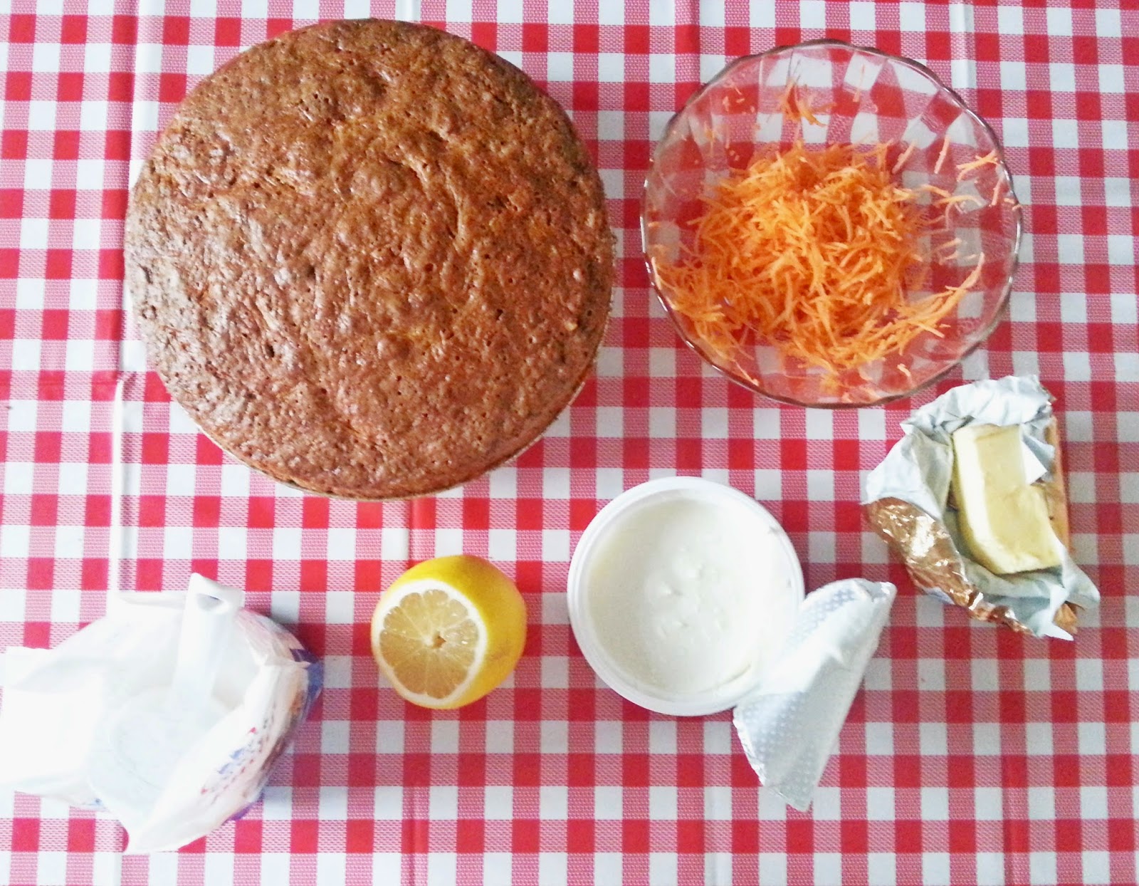 Wszystkie sk?adniki na krem: serek, sok z cytryny, cukier i mas?o miksujemy na g?adk? mas?. Jak ciasto ju? wystygnie polewamy wierzch kremem i posypujemy start? marchewk? 🙂