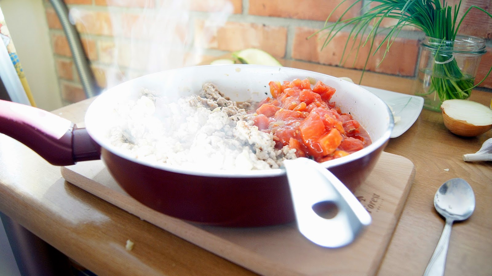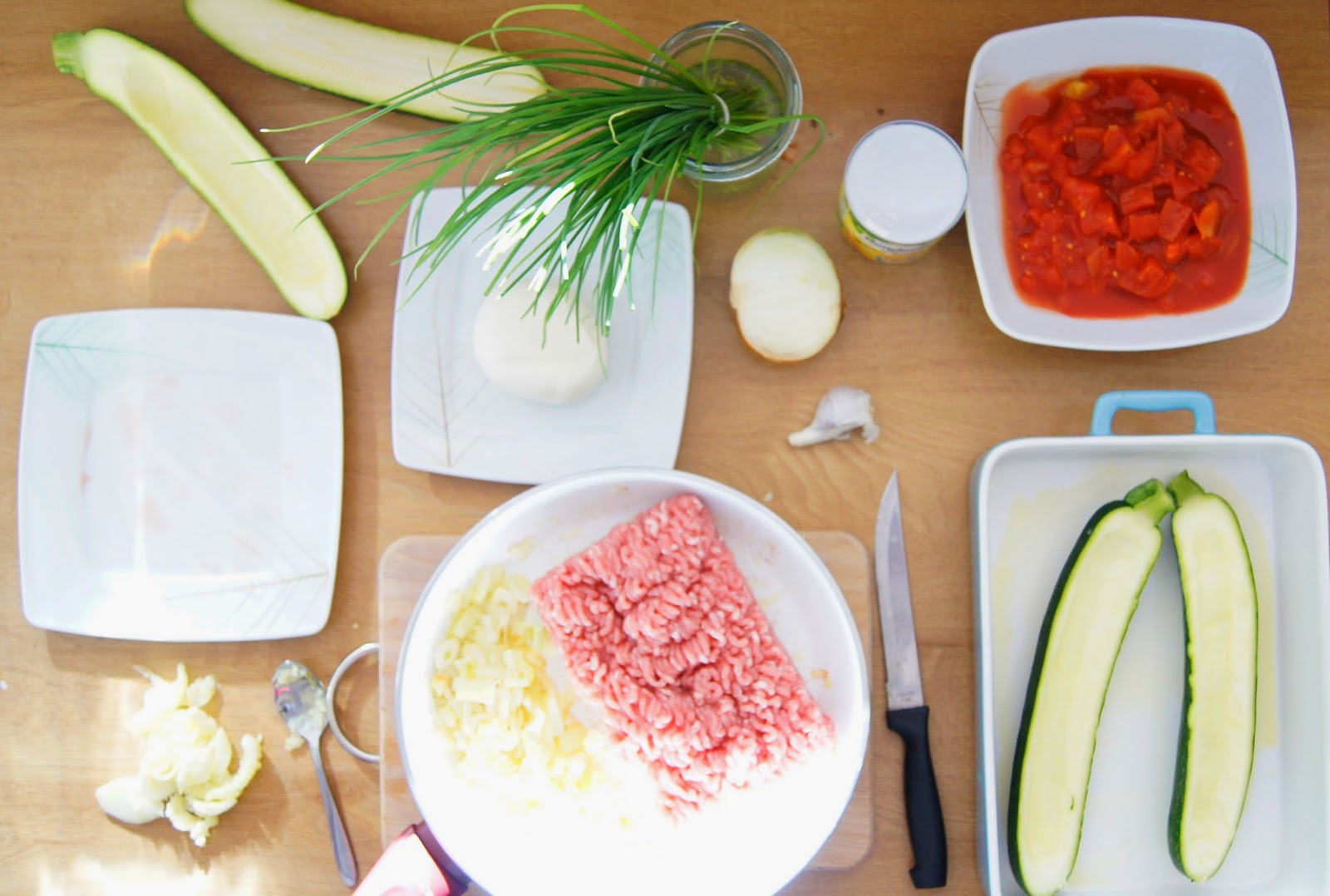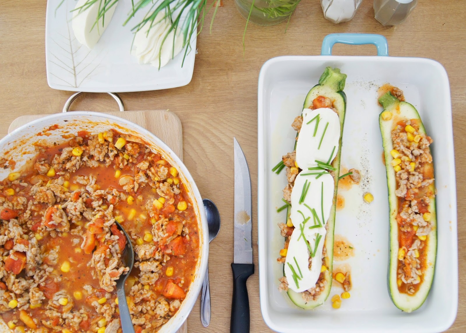 Cebul? kroimy w grub? kostk?, a czosnek na plasterki i przysma?amy na oliwie z oliwek. Nast?pnie wrzucamy mi?so i przyprawiamy sol?, pieprzem, tymiankiem, bazyli?, zio?ami prowansalskimi i oko?o 1 ?y?eczk? przyprawy do kuchnii meksyka?skiej. Gdy mi?so si? ju? zarumieni dodajemy pomidory z puszki i kukurydz?. Dusimy razem oko?o 10 minut. Cukinie przekrajamy na p? i wydr??amy ?rodek. Cukinie oprszamy sol? i pieprzem. Sos przek?adamy do cukinii. K?adziemy plastry mozzarelli, posypujemy szczypiorkiem i pieczemy przez 20-25 minut w temp. 180 stopni. Smacznego! 🙂