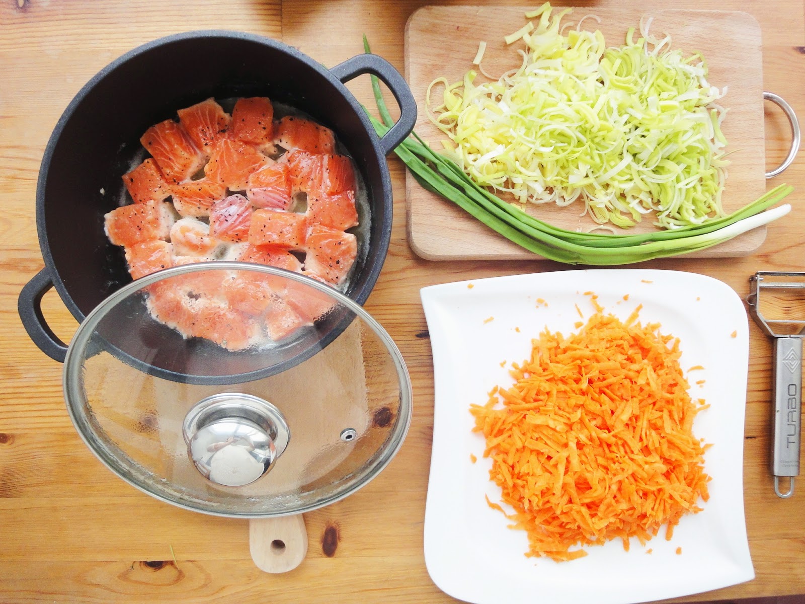 2 Replies to “Dania jednogarnkowe: #5: Ryba w sosie ?mietanowym z marchewk? i porem”