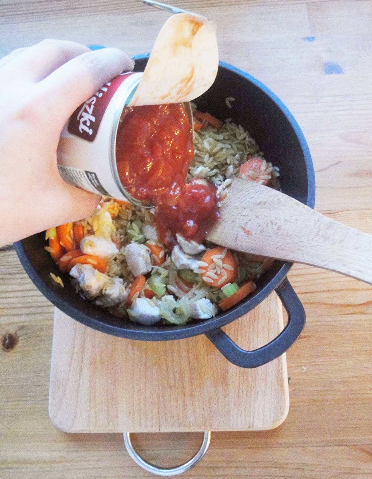 Kawa?ki kurczaka i makaron orzo (makaron, ktry swoim wygl?dem przypomina ry?) i do tego warzywa to mj sposb na pyszny pe?nowarto?ciowy posi?ek. I nie martwcie si? przepis jest naprawd? bardzo prosty, wi?c nie zniech?cajcie si? nazw? 'zupa’ 🙂 na pewno dacie rad?! Obiecuj?!
