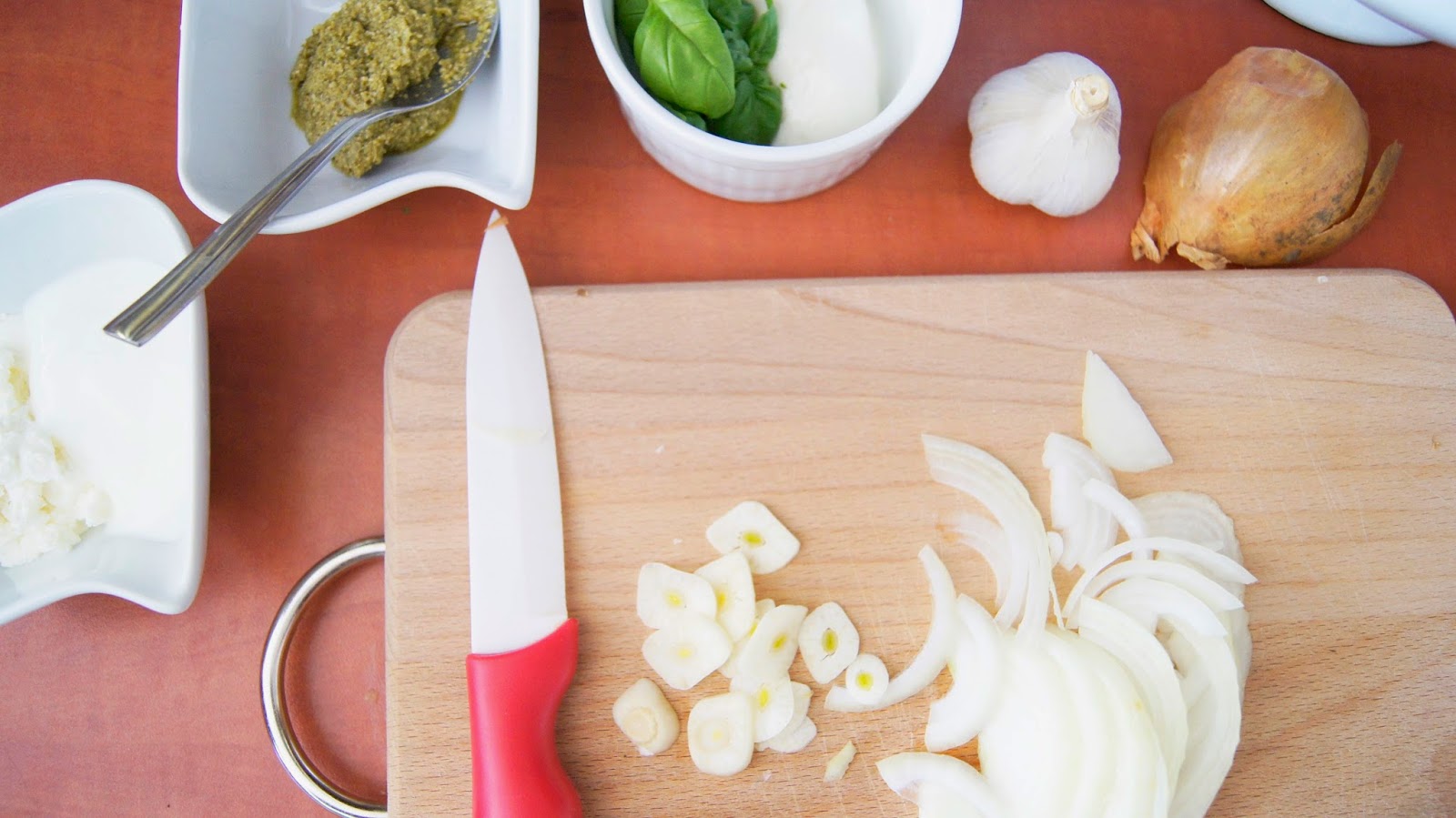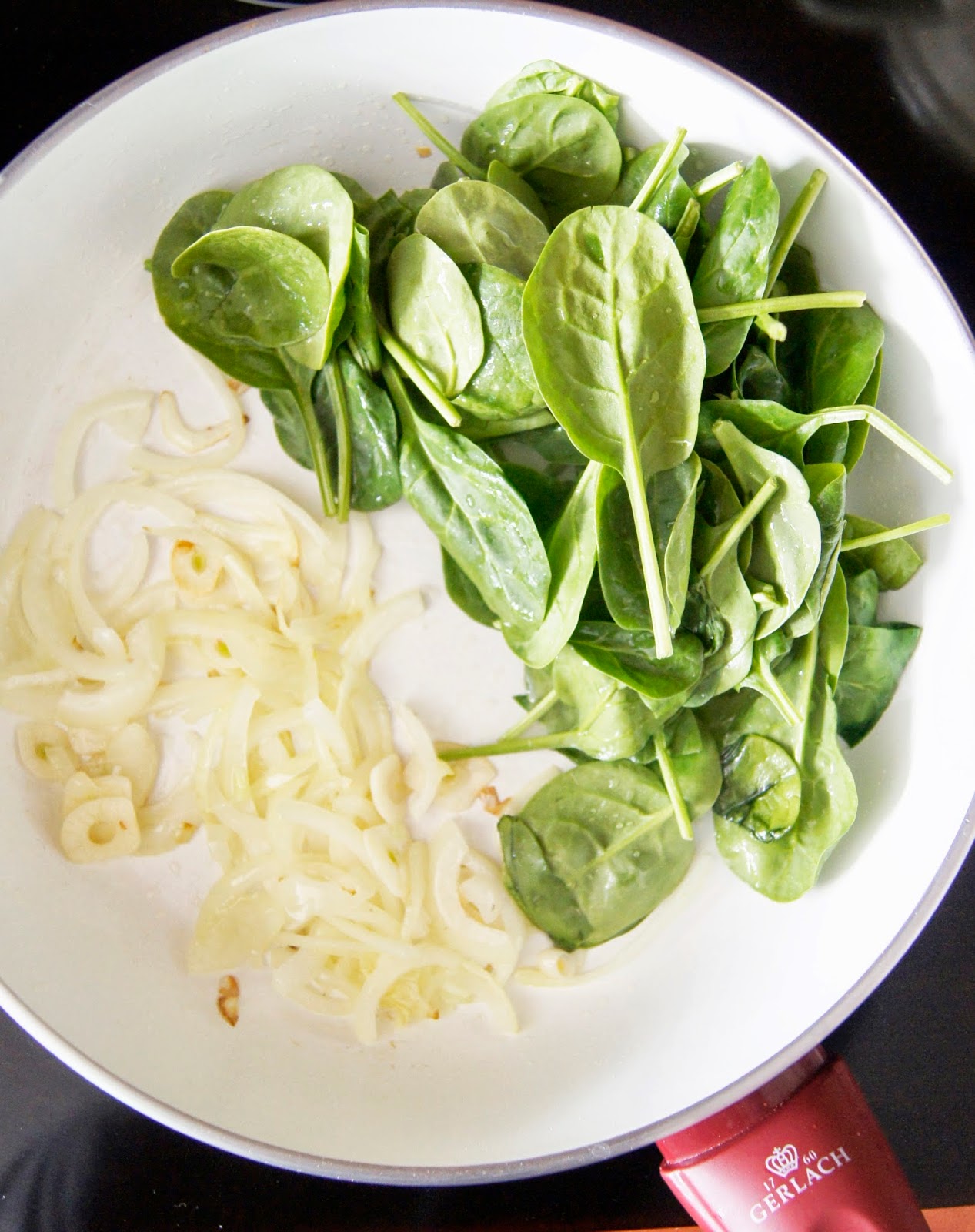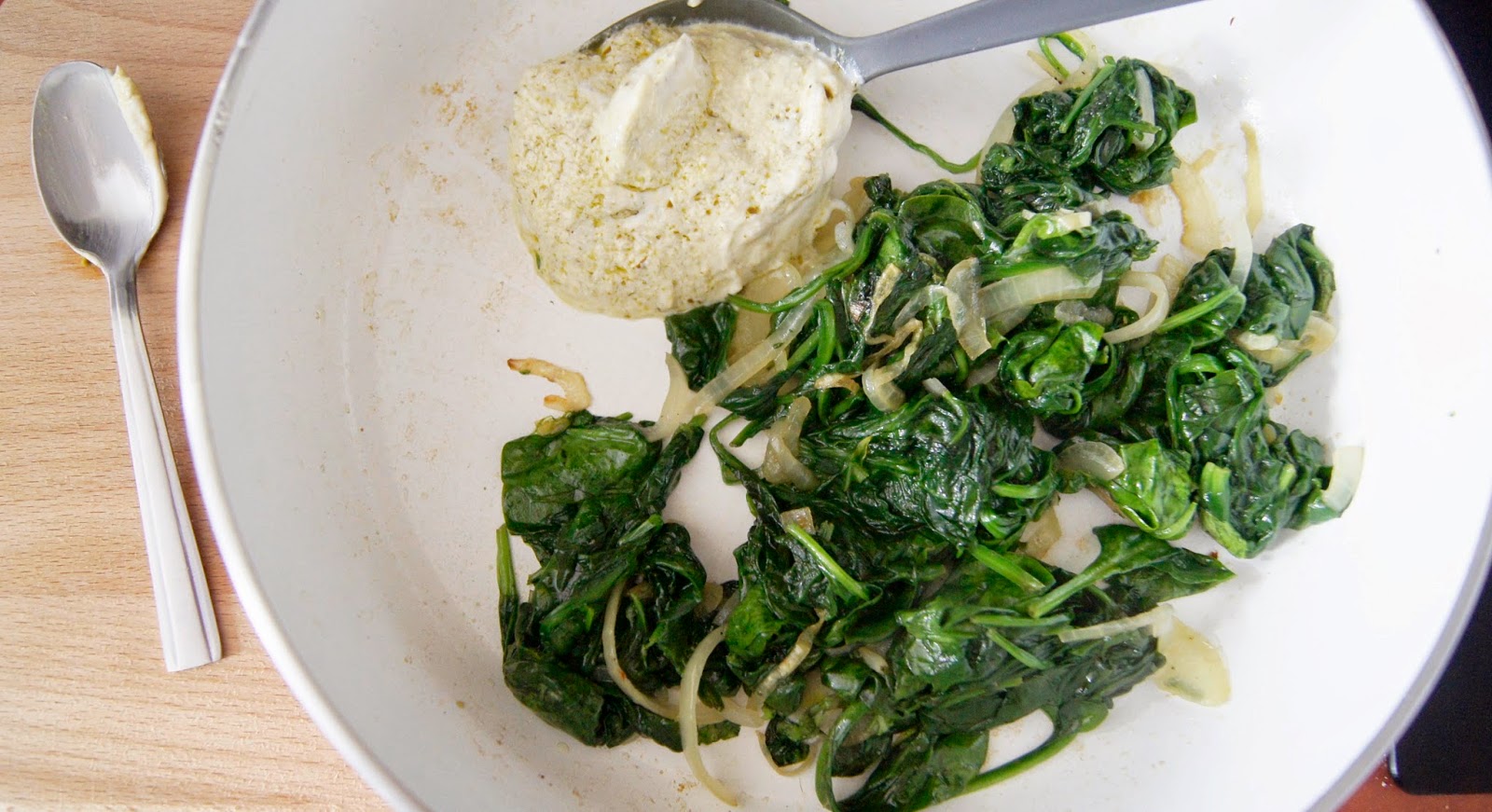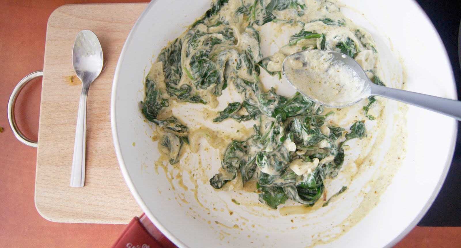 Makaron gotuj? we wrz?cej i osolonej wodzie do mi?kko?ci. Na patelni? wlewam po ?y?ce oliwy z oliwek i oleju i po nagrzaniu wrzucamy pokroje w pirka cebul? i czosnek. Szpinak dok?adnie myj? i gdy cebula si? zeszkli wrzucam na patelni? i dok?adnie mieszam. W miseczce mieszam jogurt, serek i pesto i dorzucam do szpinaku. Na koniec posypuj? odrobin? soli i pieprzu. Mozzarell? kroj? w drobn? kostk?. Po?ow? wrzucam do sosu, a po?ow? zostawiam do posypania na wierzch. Makaron odcedzamy i nak?adamy na talerz, polewamy sosem i posypujemy mozzarell? i v’oila! (Z tych proporcji starczy na jedn? porcj? dania) bon appetit! 🙂