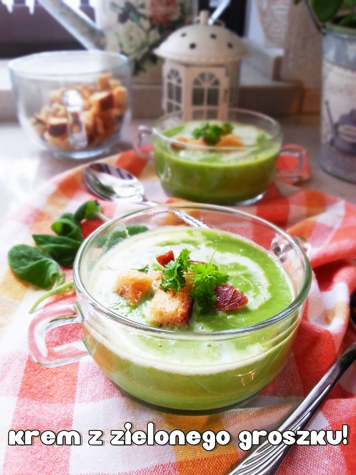 Gor?cy, pyszny i rozgrzewaj?cy kubek zielonego kremu to idealny pomys? na zdrowy i syc?cy obiad. Je?li kto? z Was nie jest przekonany do jego smaku to polecam ten przepis. Niezwykle prosty, a zmieni Wasze zdanie o odrobin? md?ym groszku. Zupa na pewno zago?ci u mnie na stole cz??ciej!