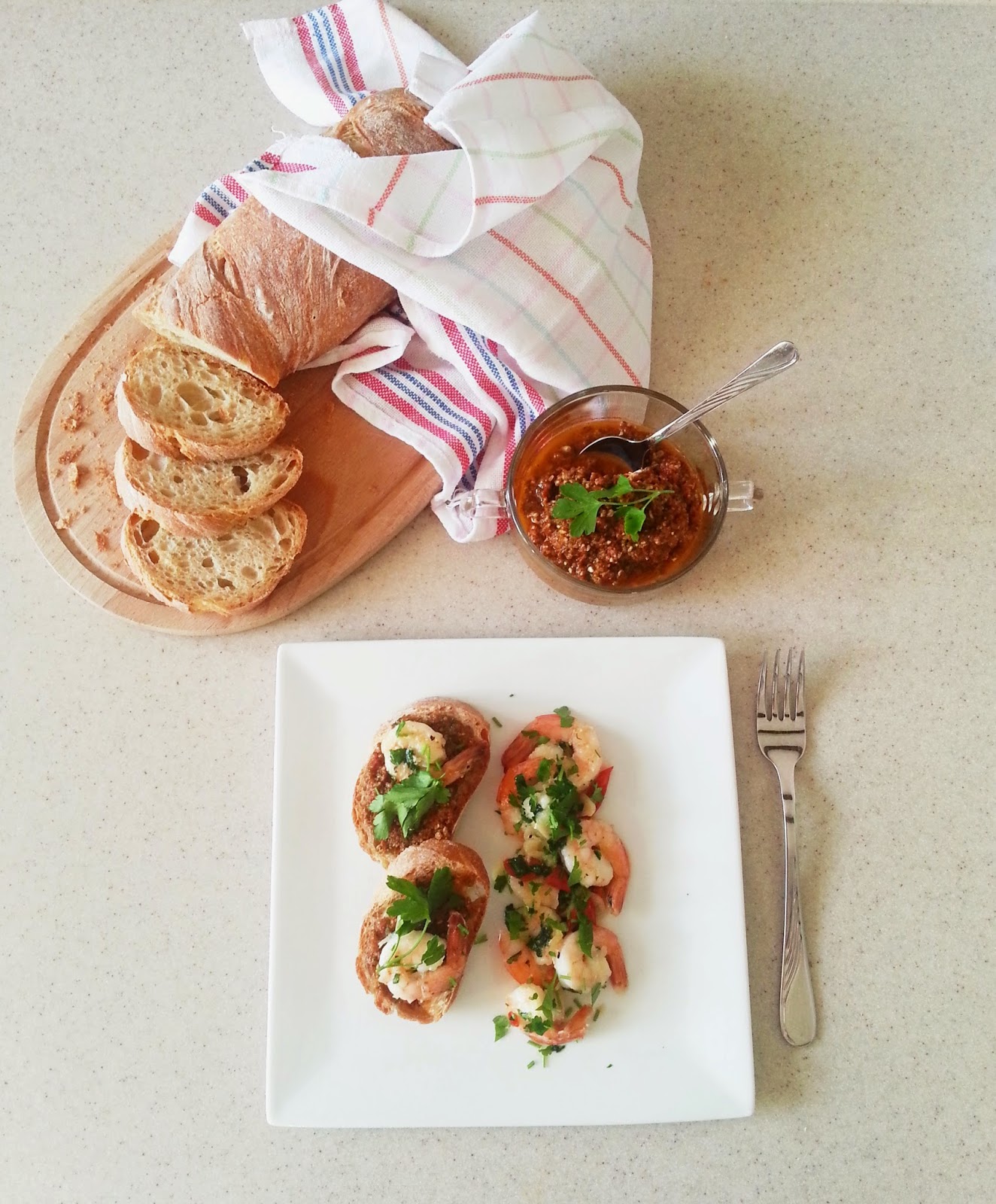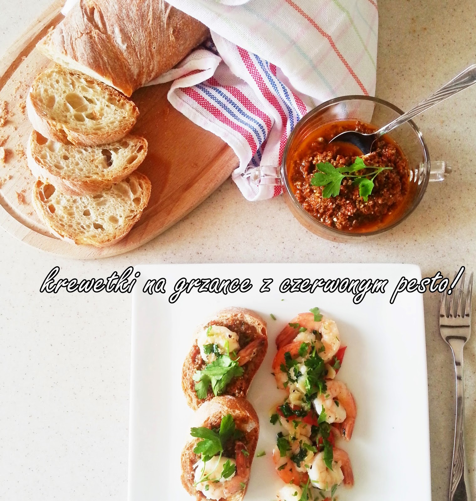 Jednak ostatnio w Lidlu mia?a miejsce promocja (i my?l?, ?e jeszcze troch? b?dzie) w?asnie na krewetki. Dzisiaj w wersji na kolacj?, albo lunch. Pyszne, ostre krewetki z grzankami z pesto, ale tym razem z suszonych pomidorw. Spodoba si? Wam!