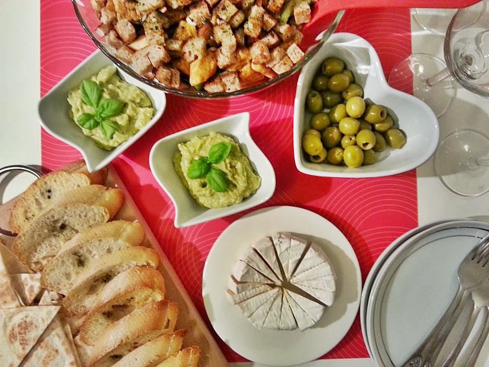przek?ski na przyj?cie, czyli sa?atka, guacamole, tortilla, czosnkowe grzanki
