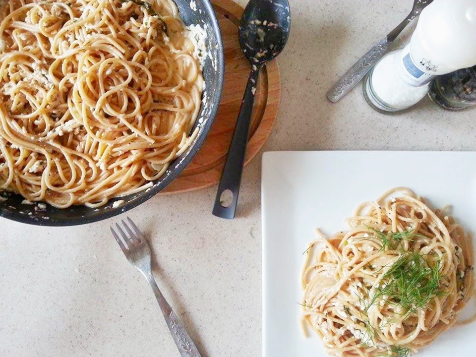 Spaghetti z ?ososiem w sosie ?mietanowym z koperkiem