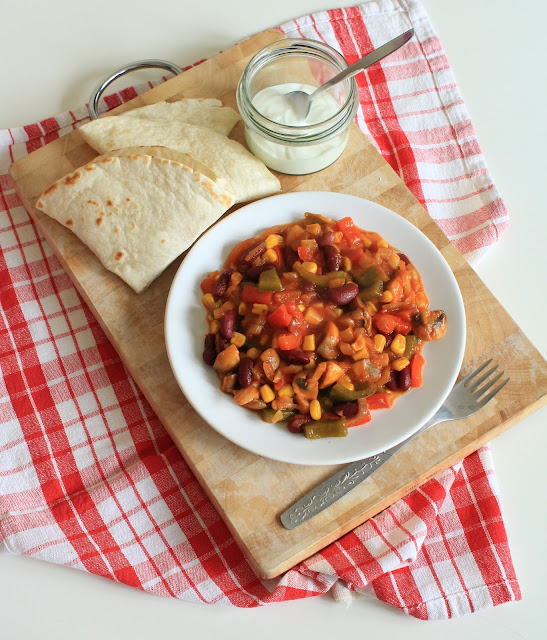Skoro dzisiaj obchodzimy ?wiatowy Dzie? Zdrowia to mam jedno przes?anie: JED?MY WARZYWA! Pyszne danie sk?adaj?ce si? z samych warzyw, lekko pikantnego sosu pomidorowego, a do tego tortilla i jogurt zachwyc? nawet najbardziej wybrednych smakoszy! Mnie to danie zachwyci?o i mam nadziej?, ?e rwnie? Wy staniecie si? jego fanami!