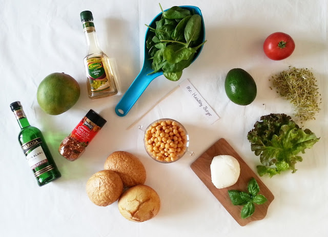 Sk?adanie burgerw: Bu?ki kroimy na p? i podgrzewamy na patelni (lub w piekarniku). Nast?pnie na spd bu?ki nak?adamy kolejno: chutney z mango, sa?at?, burgera z ciecierzycy, awokado, pomidora, mozzarell?, kie?ki i wierzch bu?ki. Gotowe!