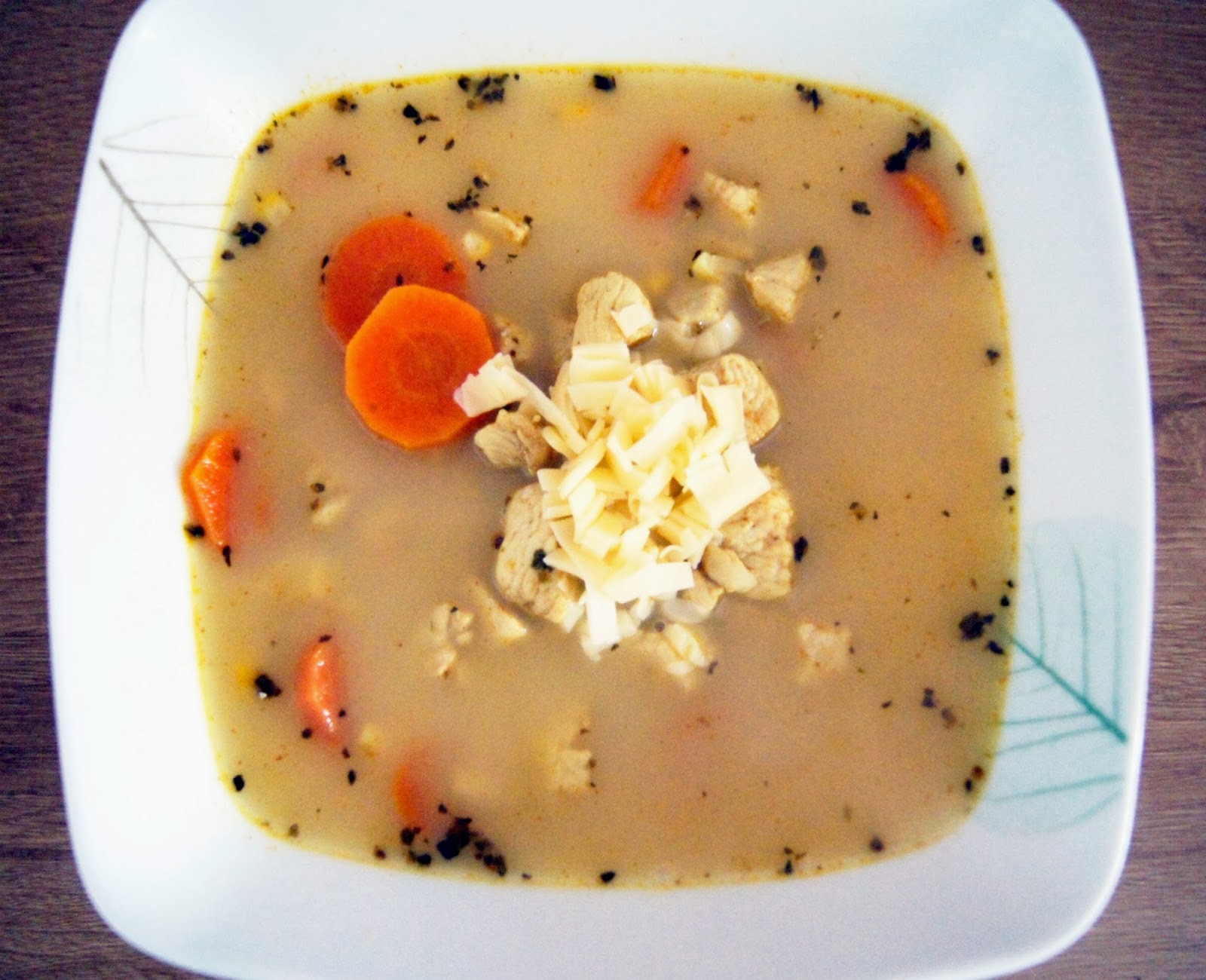 Marchewk? kroimy w plasterki i wrzucamy do oko?o 2 litrw wody. Wrzucamy kostk? bulionow? i papryk? s?odk? i curry po 1 ?y?eczce i papryk? ostr?, bazyli?, oregano po p? ?y?eczki i gotujemy. Kurczaka kroimy w kostk? i sma?ymy na patelni. Doprawiamy przypraw? do gyrosa. Na koniec dorzucamy kukurydz?. Wszystko wrzucamy do bulionu. Gotujemy oko?o 5 minut, dolewamy oko?o 50-100 ml ?mietanki kremwki. Zup? nalewamy do miseczek i posypujemy tartym serem ??tym. Smacznego 🙂